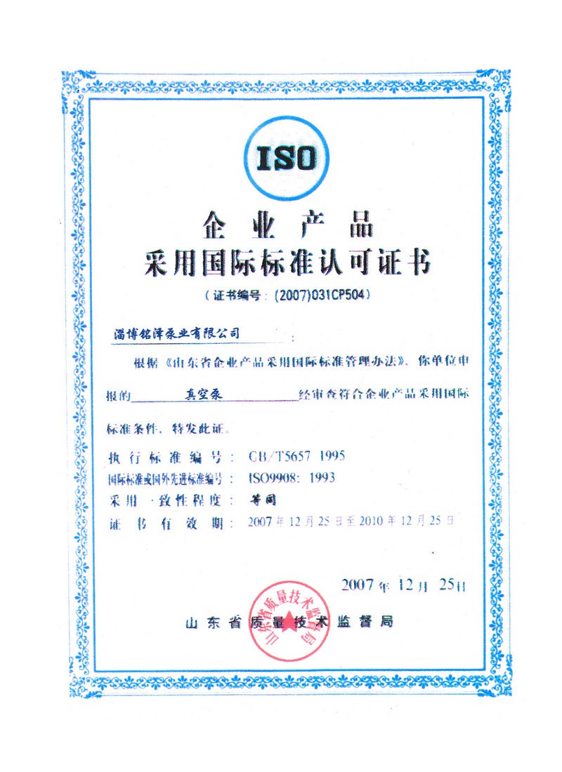 化工泵檢驗證書