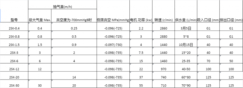 2SK系列兩級水環(huán)真空泵主要技術(shù)性能參數(shù)表